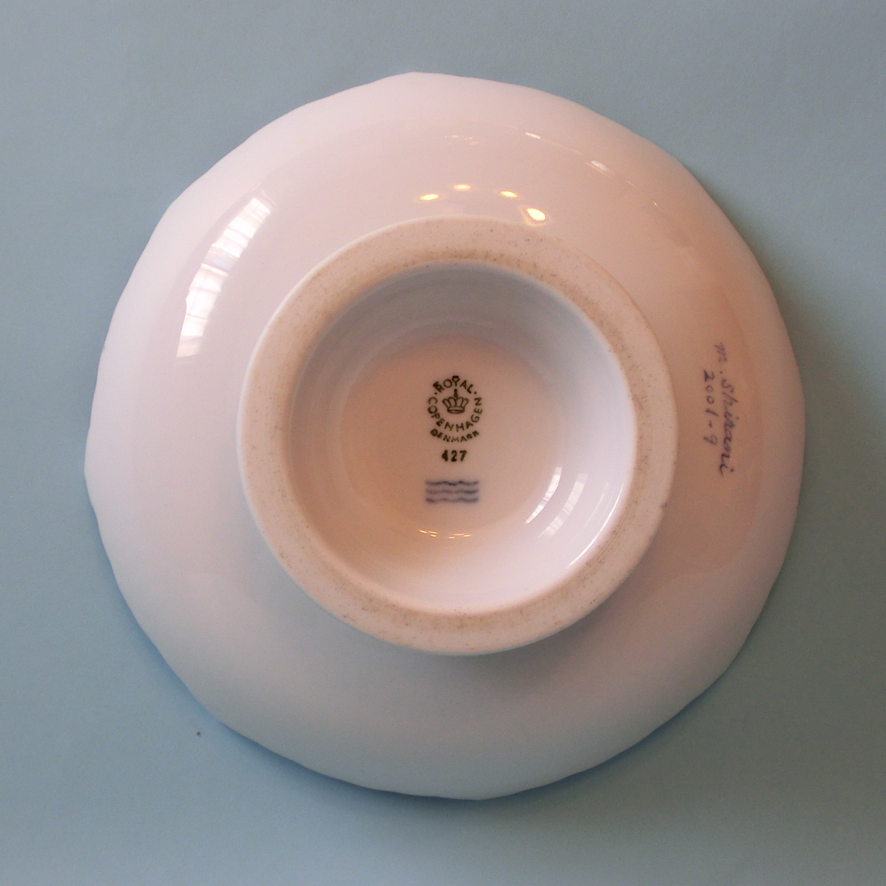 Porcelain art #25 ロイヤルコペンハーゲン製白磁のケーキディッシュに特徴的な北欧風の草花模様を写した作品。前年にデンマークの工房を訪問した際、熱心に質問し筆の使い方などを教えてもらっていた作者が2001年に制作した作品。